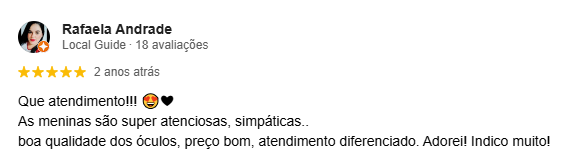 Nossa equipe de atendimento é especializada e sempre pronta para ajudar você a encontrar a melhor solução para a sua visão, com atenção, profissionalismo e carinho. Venha nos visitar e enxergue o mundo com mais clareza!